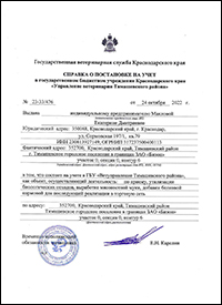 Опубликованы актуальные справки о постановке на учёт в государственном бюджетном учреждении Краснодарского края «Управление ветеринарии Тимашевского района»